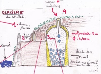 Ensuite, Liverdun dispose de deux constructions appelées “glacières” dont une est située non loin du chalet. Une glacière assurait autrefois le stockage de morceaux de glace issus du canal ou de la Moselle. La glace était ensuite vendue aux habitants ou commerçants pour la conservation de leurs denrées périssables. La structure permettait de garder une température froide et ainsi stocker quelques 15m3 de glace pendant plusieurs mois.